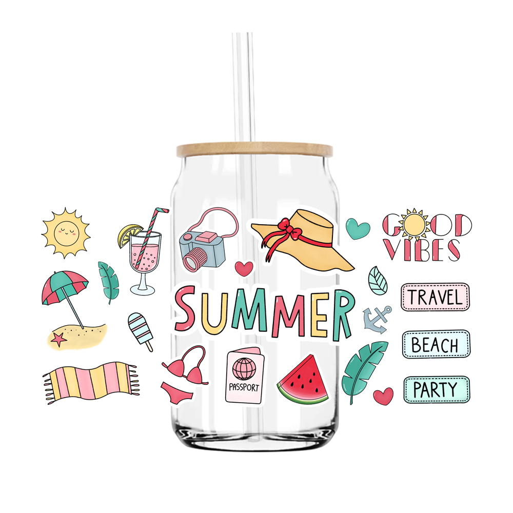 Hot Summer Season Good Vibes 16OZ UV DTF Stickers Wrap
