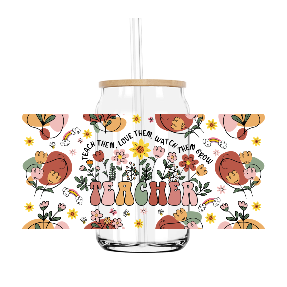 Teacher Love Floral 16OZ UV DTF Stickers Wrap