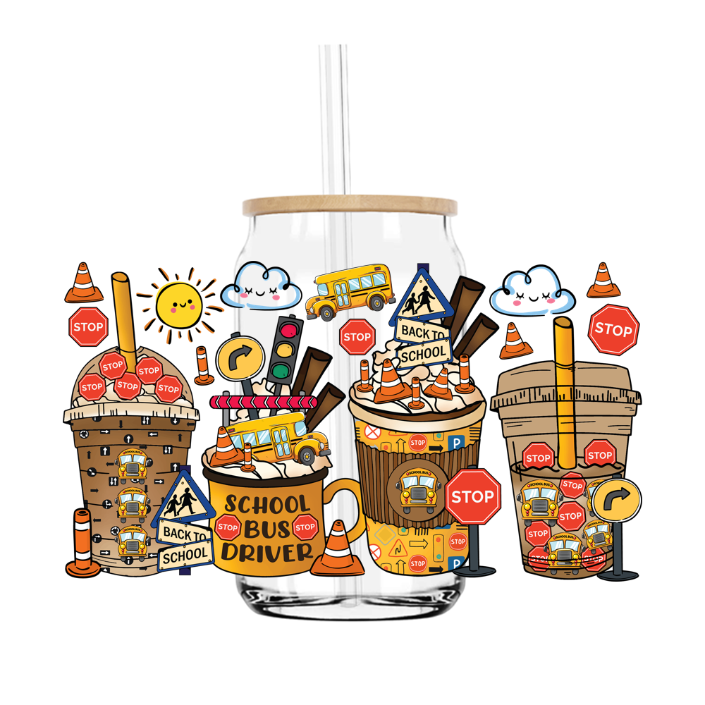 School Bus Driver Coffee Cup 16OZ UV DTF Stickers Wrap