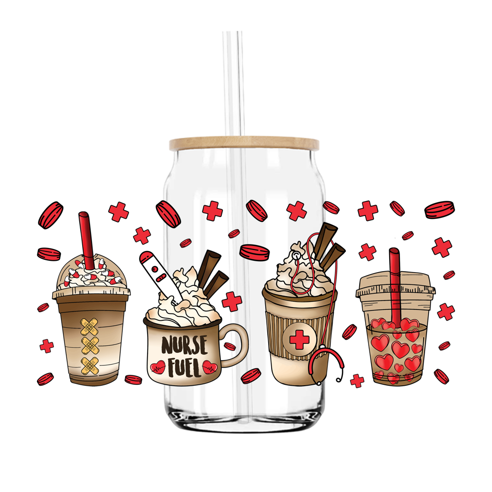 Nurse Fuel Coffee Cup 16OZ UV DTF Stickers Wrap