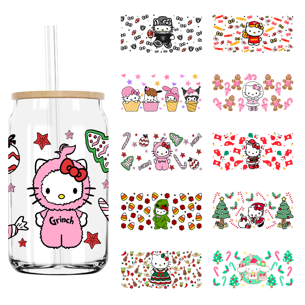 Cute Christmas Hello Cats 16OZ UV DTF Cup Wrap Transfers Stickers Custom Labels DIY Durable Waterproof Logo For Libbey Glass Can