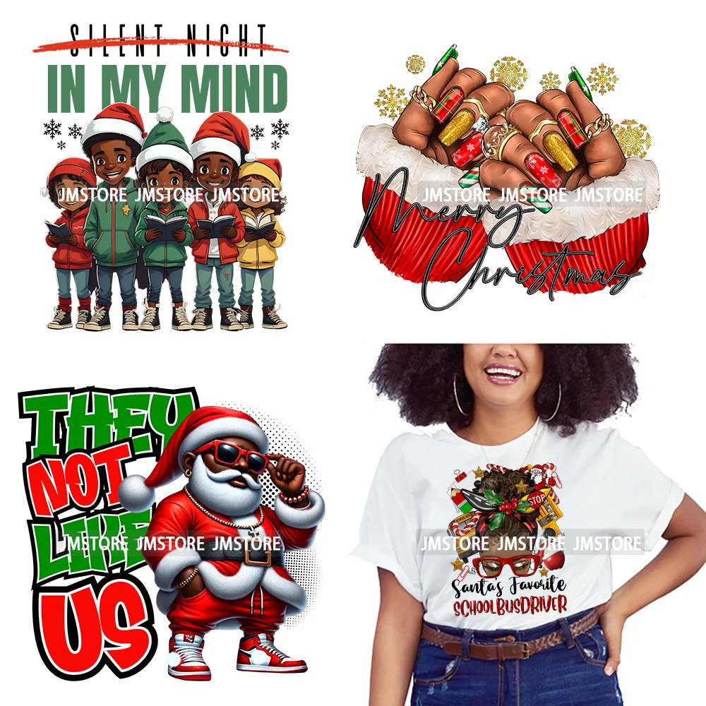 Just a Girl Who Loves Christmas Afro Woman Not Like Us Hip Pop Santa Iron On DTF Transfers Stickers Ready To Press For Hoodies