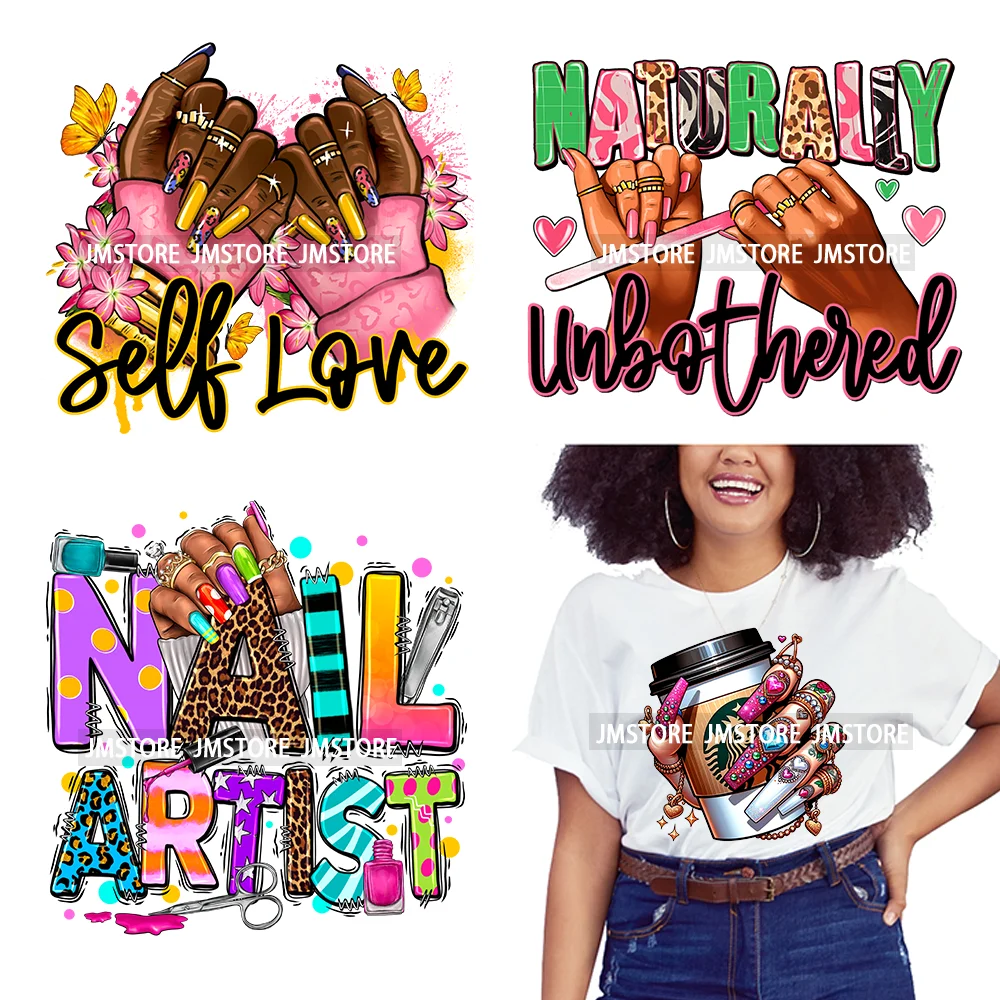 New Periodt Afro Woman Nail Artist Tech Printing Decals Black Queen Self Love Hands Iron On DTF Transfer Stickers For Hoodies