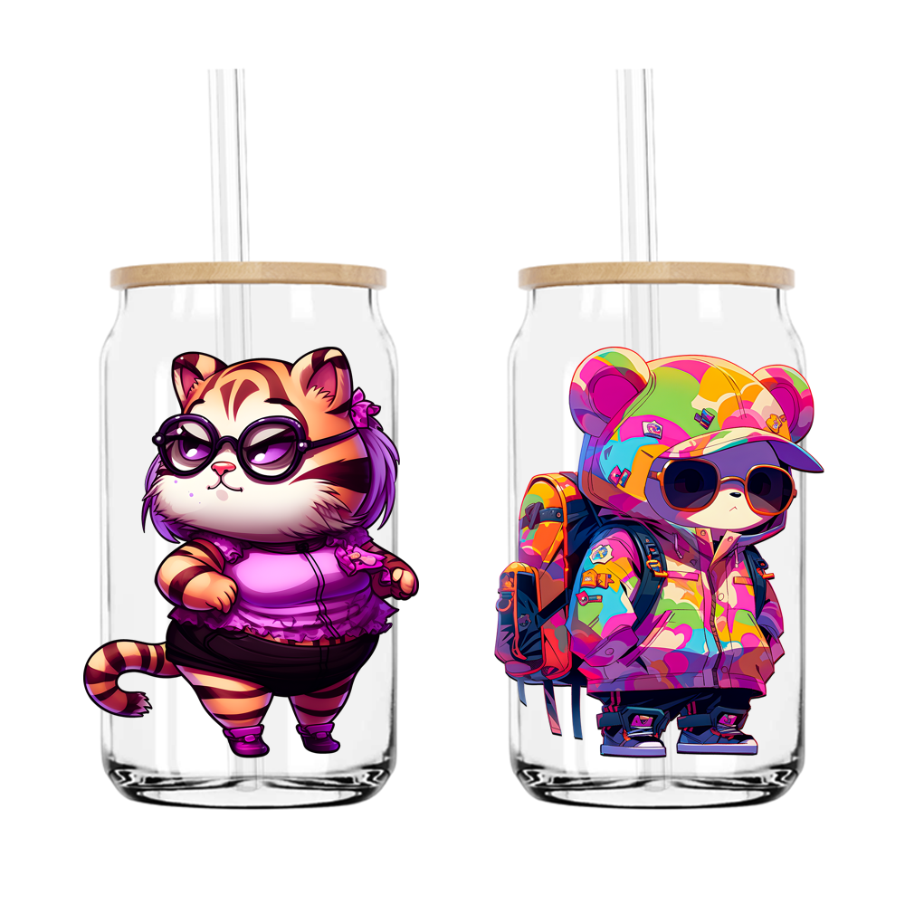Cute Cartoon Animal Tiger Cat Girls UV DTF Stickers Decals