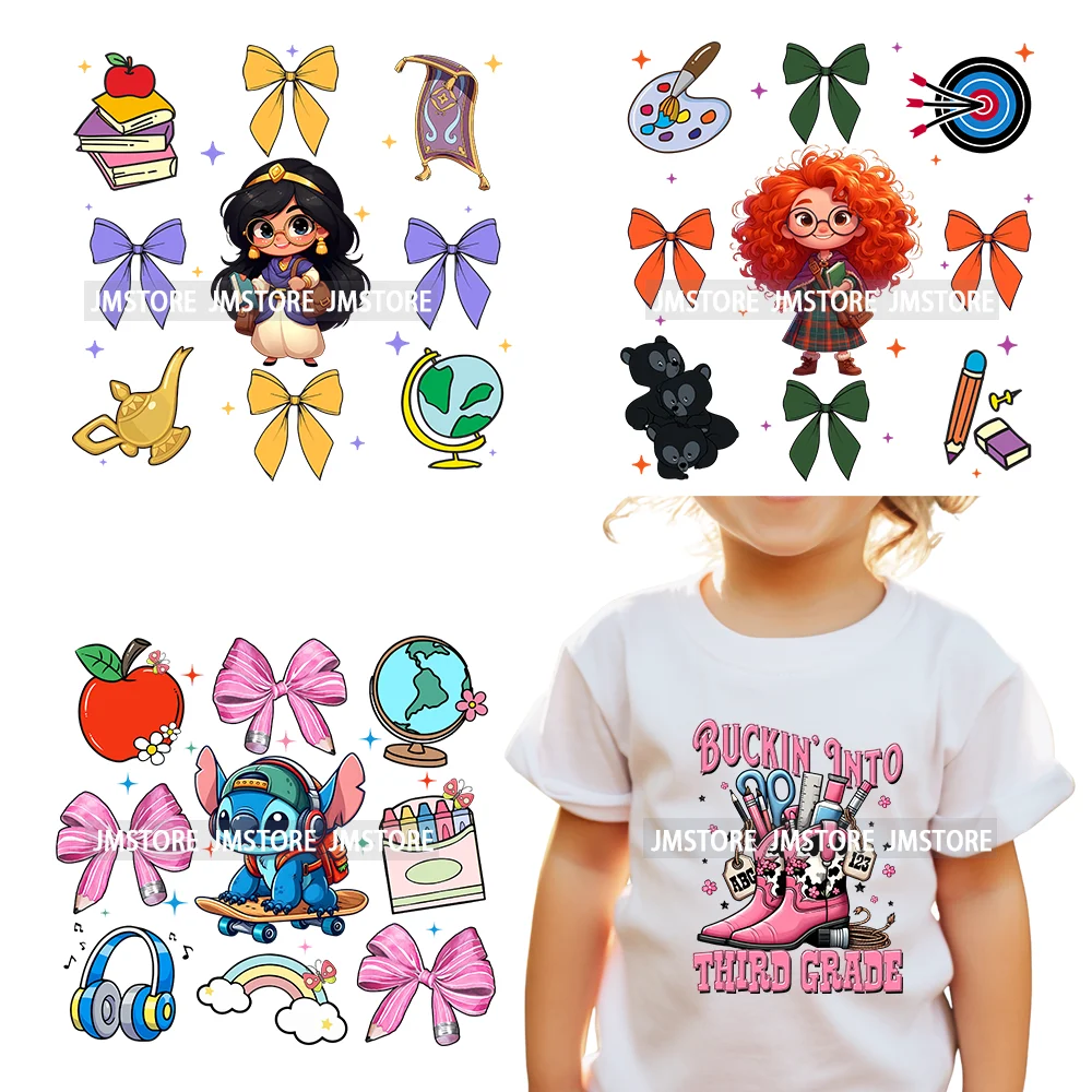 Cartoon Princess Character Friends Back To School Coquette Bow Decals DTF Iron On Transfers Stickers Ready To Press For T-shirts