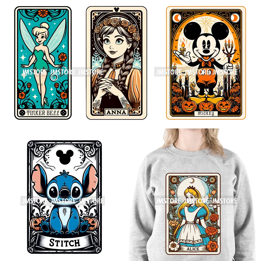 Cute Cartoon Animal Princess Characters Halloween Tarot Cards DTF Iron On Transfers Stickers Ready To Press For T-shirt Bags