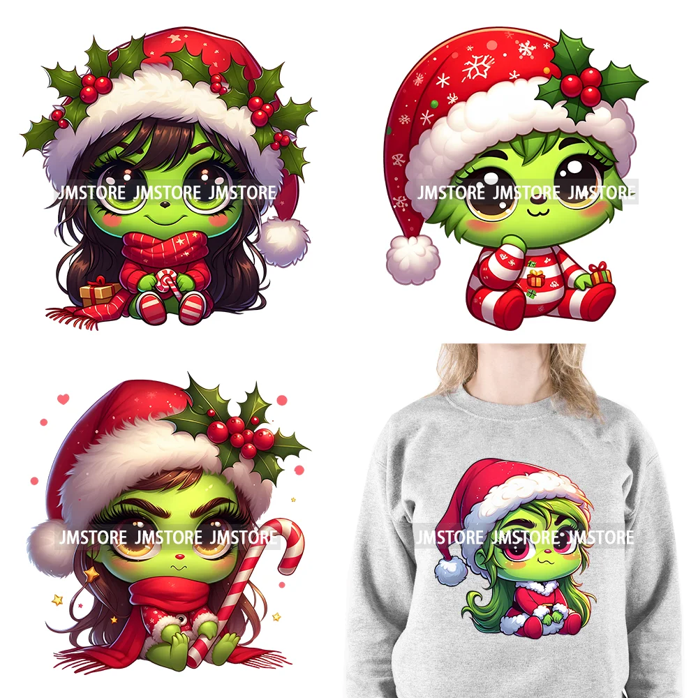 Santa Hat Candy Cane Mistletoe Cartoon Character Christmas Season Iron On DTF Transfers Stickers Ready To Press For Clothes Bags