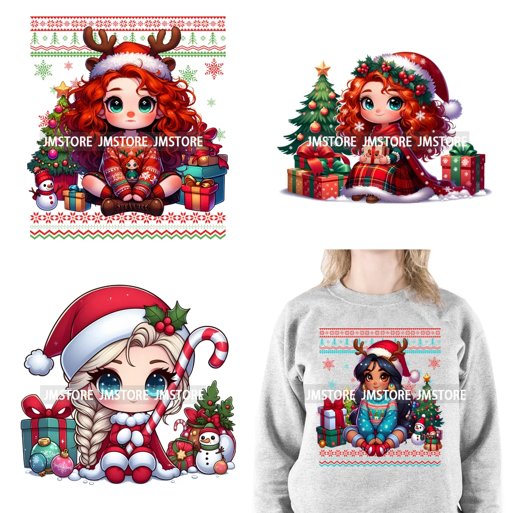 Cute Princess Red Ugly Sweater Cartoon Girls Friends Merry Christmas Iron On DTF Transfers Stickers Ready To Press For Clothing