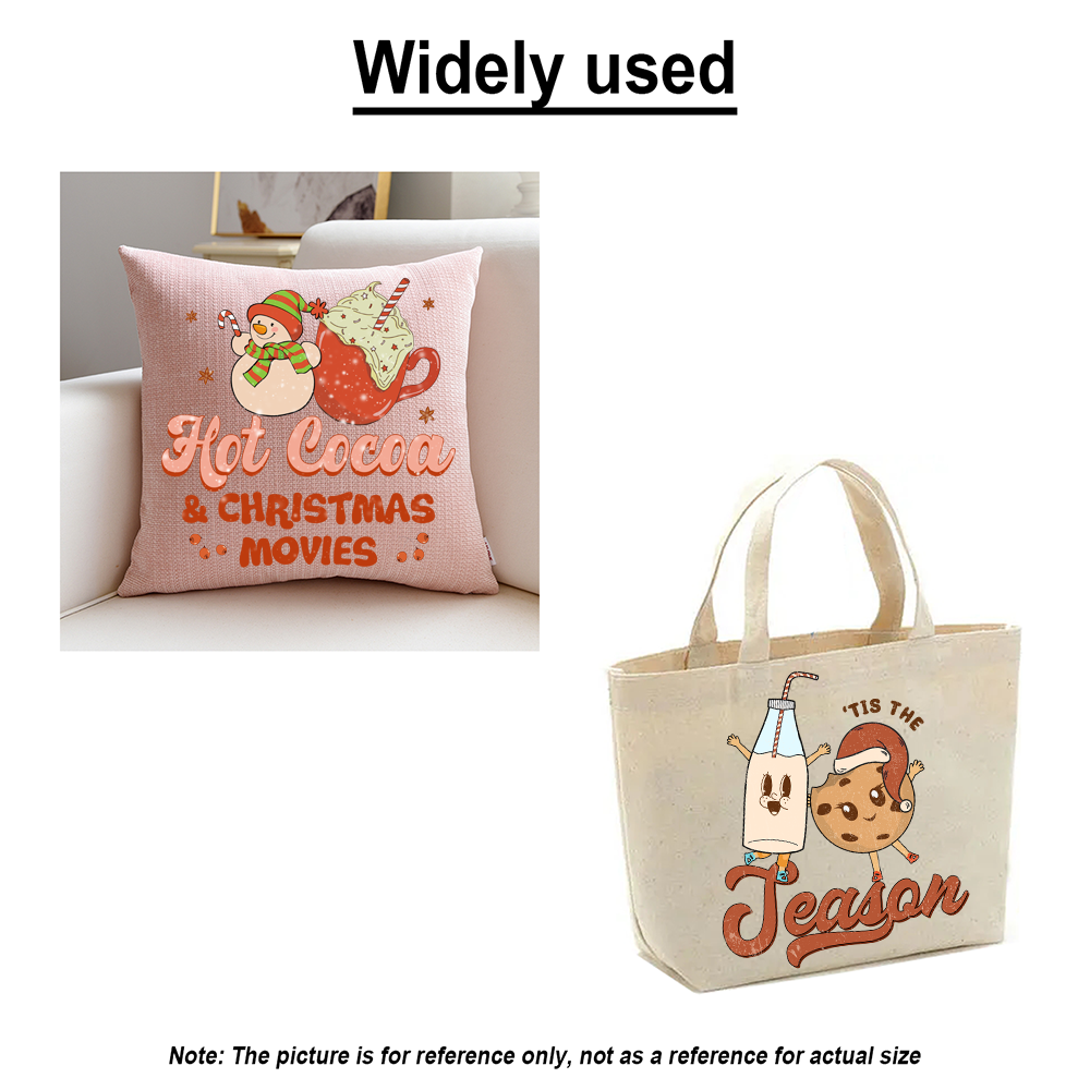 - Application:Can be used for cotton, polyester, knitted fabrics, non-woven fabrics, leather products, luggage fabrics, etc.(such as clothing, fabric bags, pillows, four-piece beds, socks, bags, knitwear, etc.)Tool Required:Household Electric Iron or Heat Press Machine
