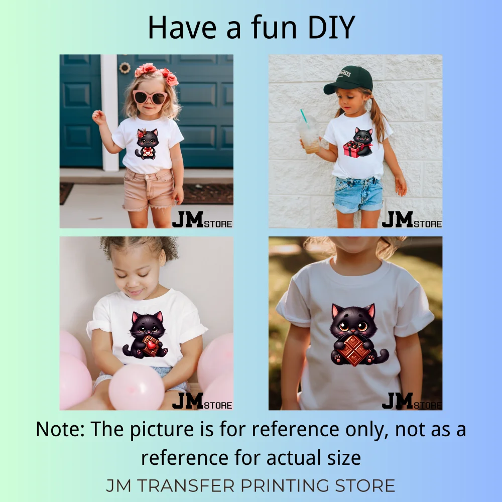 15cm 5.9in Kids Cute Flower Heart Love Valentine Black Cat Iron On Heat Transfer Sticker For Clothes Print Vinyl Washable Decal