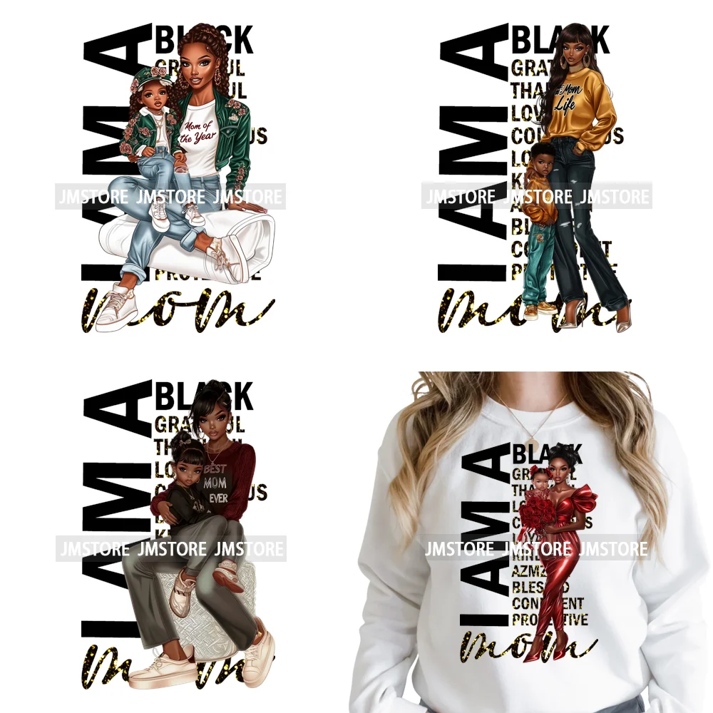 Afro Mother Magic Black History Month Power Mom Life Iron on Washable DTF Heat Transfers Stickers Ready to Press for Sweatshirts