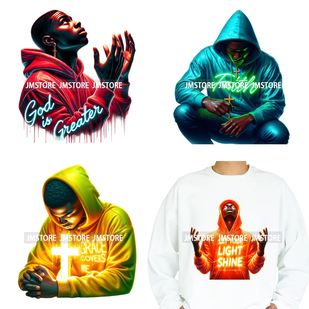 Black Young Male Christian Spiritual Prayer Faith Warrior Religious Iron on DTF Heat Transfer Sticker Ready to Press for Hoodies