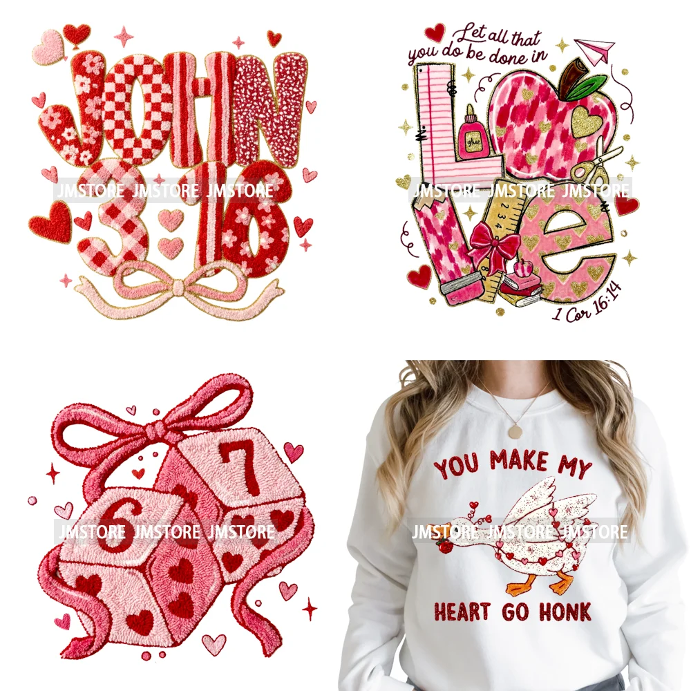 Christian Valentines Faux Crochet Yarn Coquette Lover Iron on Washable DTF Heat Transfer Stickers Ready to Press for Hoodies Bag