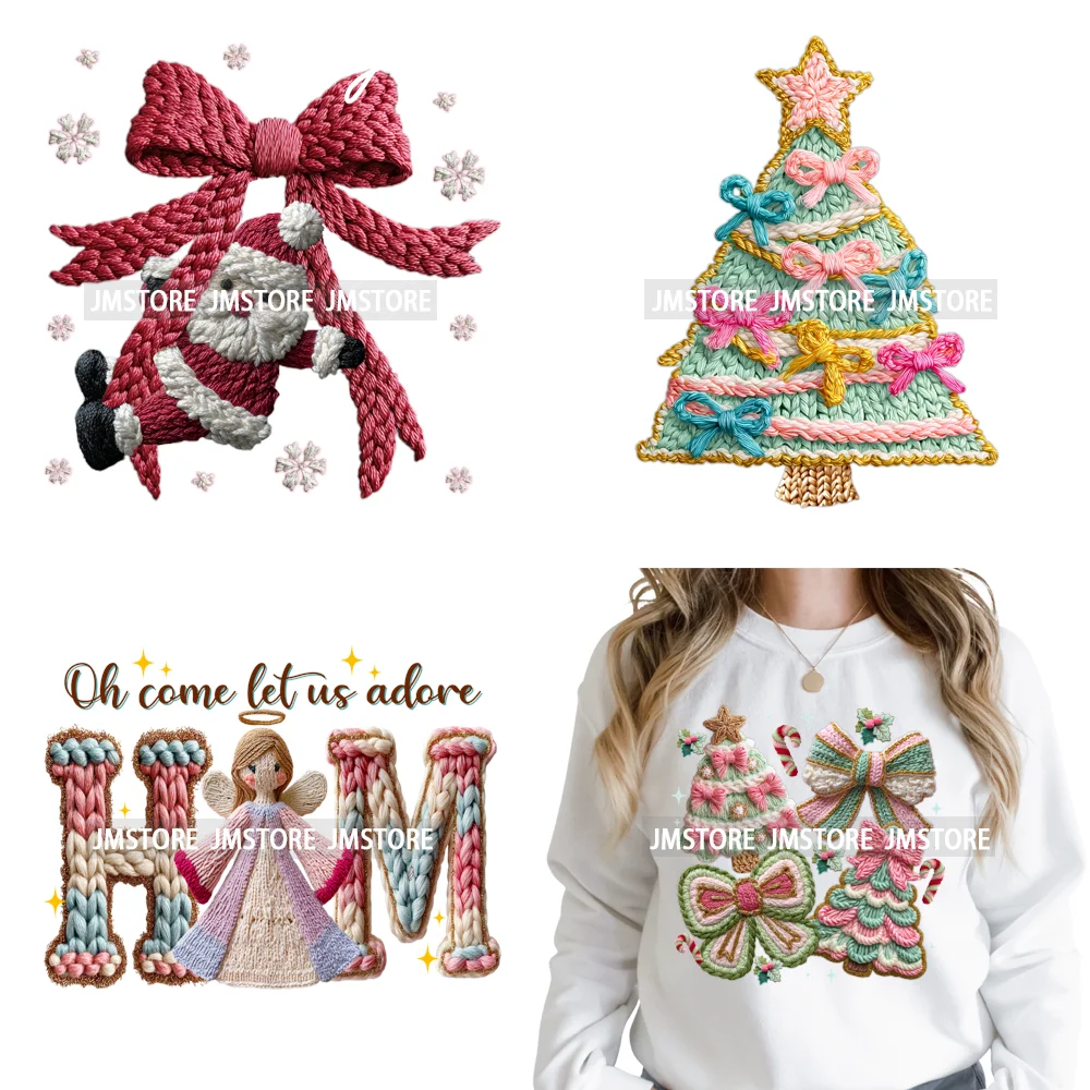 Cozy Faux Yarn Coquette Christmas Tis The Season Tree Santa Xmas Vibes Iron on DTF Transfers Stickers Ready to Press for Clothes