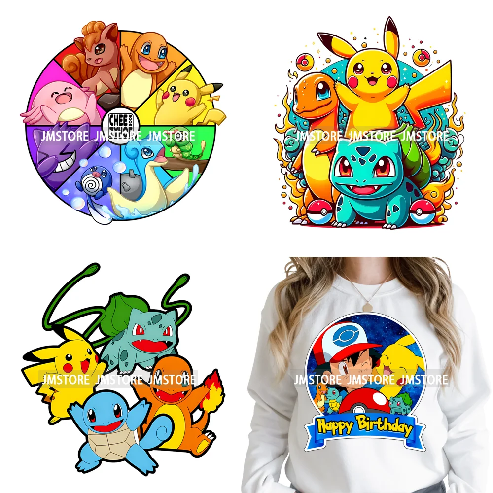 Cute Cartoon Monster Kids Anime Pokeball Game Lover Iron on Washable DTF Heat Transfers Stickers Ready to Press for Hoodies Bags
