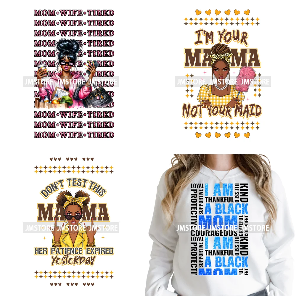 Fashion Afro Super Mom Queen I'm That Mama Power Saying Iron on Washable DTF Heat Transfers Stickers Ready to Press for Clothing