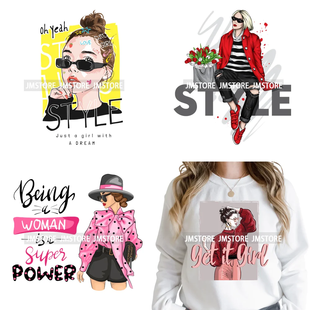 Girls Attitude Quotes Urban Street Style Lady Powers Iron on Washable DTF Heat Transfers Stickers Ready to Press for Clothing
