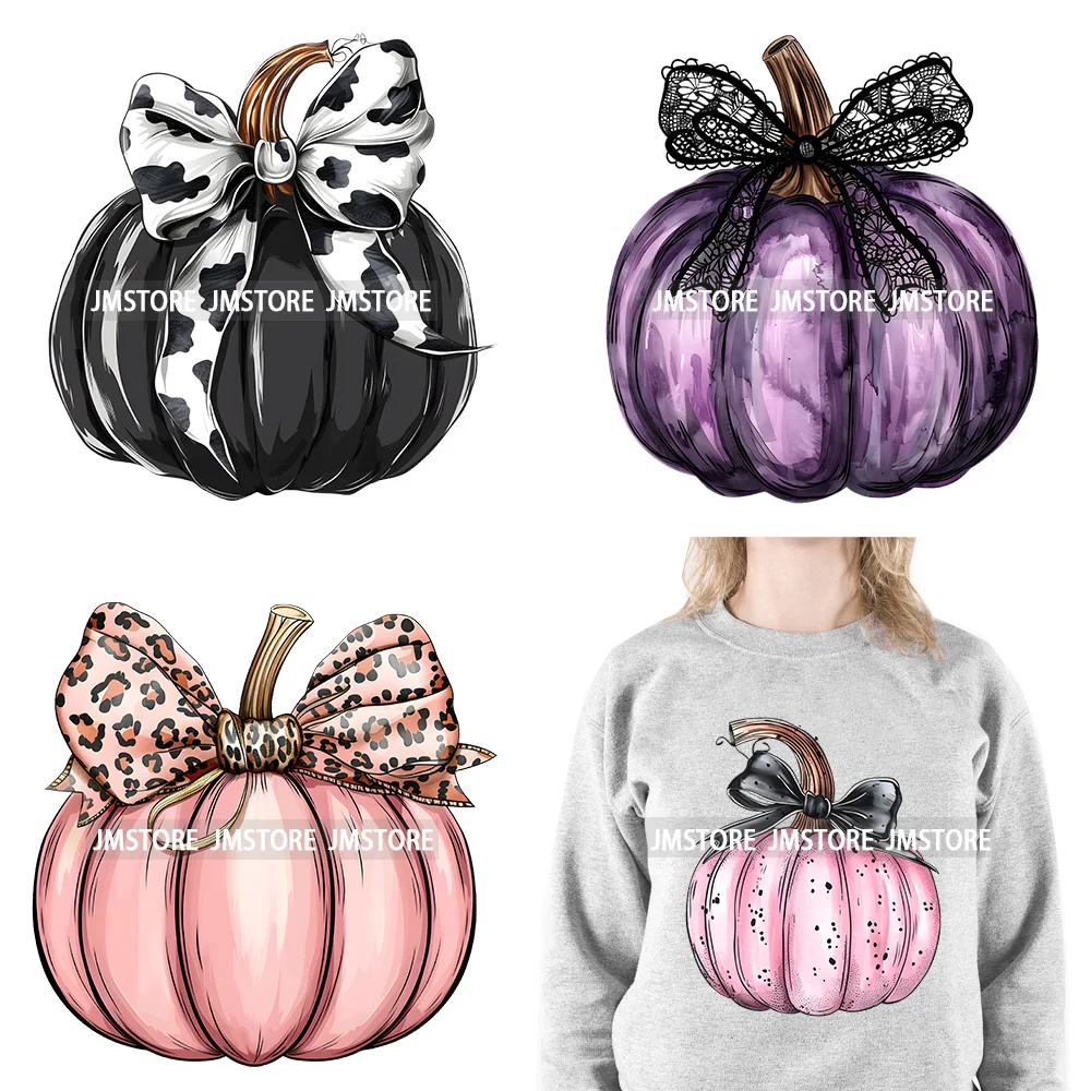 Colorful Gothic Girly Halloween Black Pumpkin Coquette Bow Decasl DTF Iron On Transfers Stickers Ready To Press For T-shirt Bags