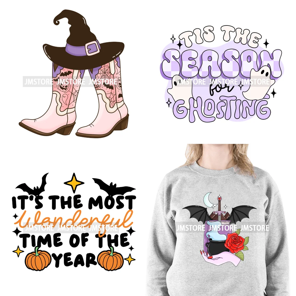 Just A Girl That Loves Halloween Howdy Boot Ghosting Spooky Season Logo Iron On DTF Transfer Stickers Ready To Press For Clothes