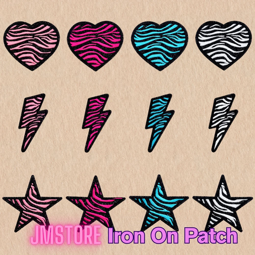 Colorful Zebra Stripes Hearts Stars Lightning Diy Iron on Small Emblem Thermoadhesive Embroidered Patches for Clothes Hats Bags