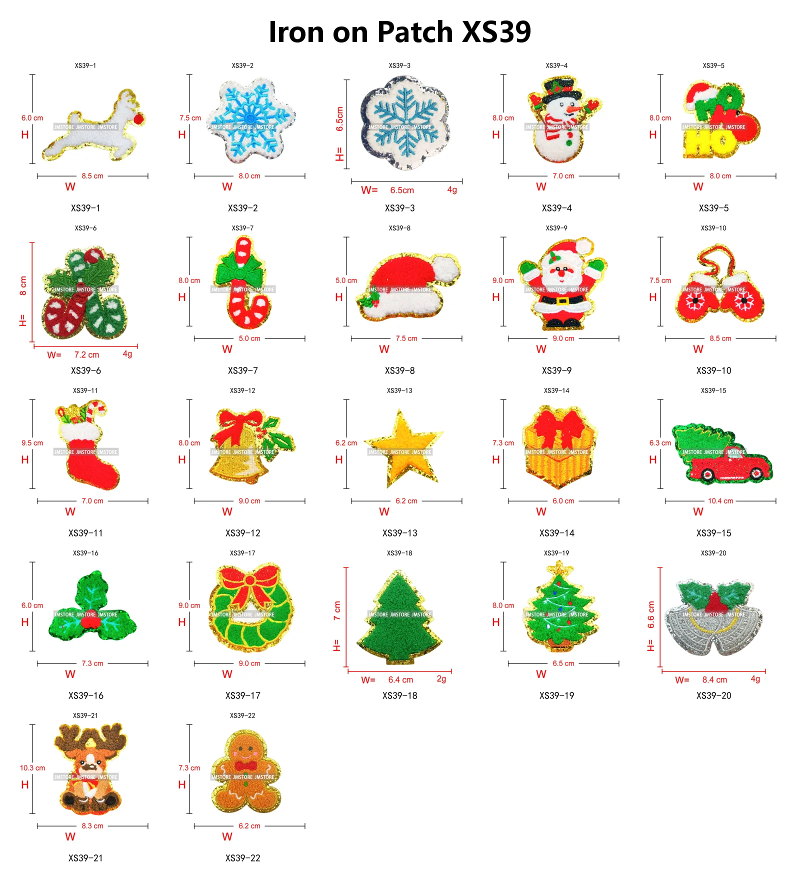 Cute Christmas Icons Jingle Bell Santa Coquette Cozy Season Glitter Applique Iron on Embroidered Chenille Patches for Clothing