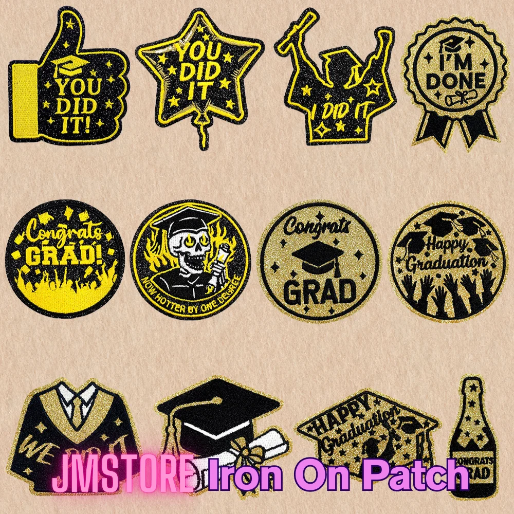 Happy Graduation College Senior Year School You Did It Iron on Small Emblem Embroidery Patches Stickers for Clothes Hats Bags