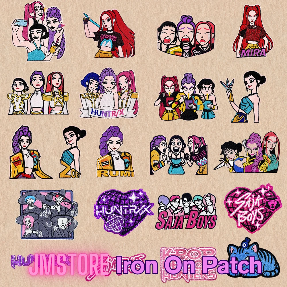Hot Kpop Music Movie Demon Hunter Characters Iron on Small Emblem Thermoadhesive Embroidery Patches Sticker for Hoodies Hats Bag