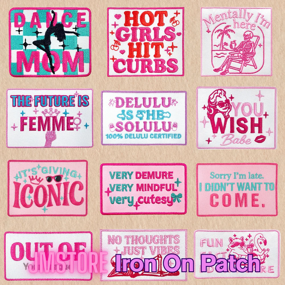 Pink Positive Self Care Lettering Quotes Iron on Small Emblem Thermoadhesive Embroidery Patches Applique for Clothes Hats Bags