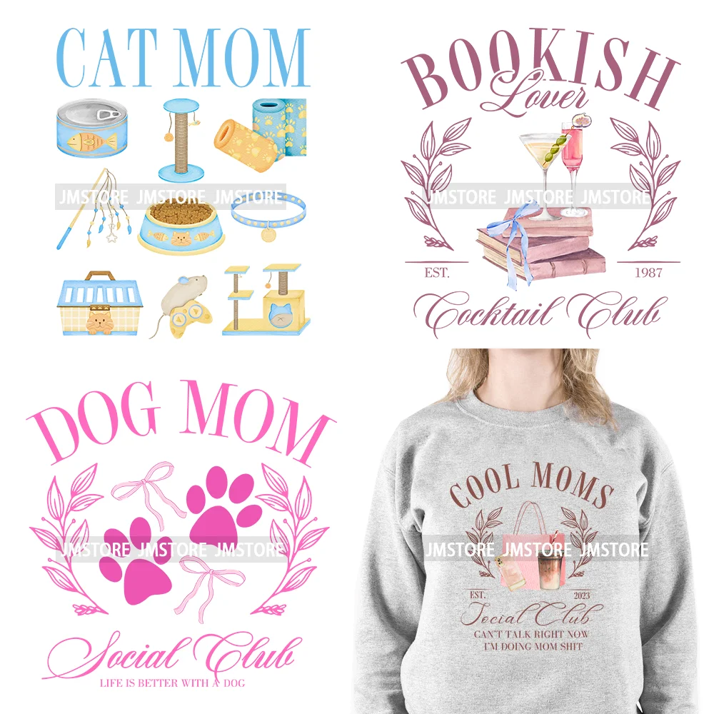 Cool Moms Self Love Club Dog Cat Mom Stuff Vibes Iced Coffee Social Club Coquette Bow Bookish DTF Transfer Stickers For Clothes