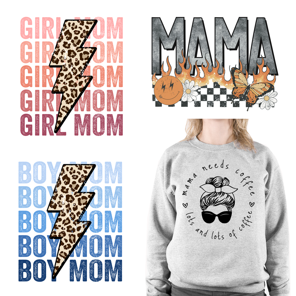 Ombre Stacked Boy Girl Mama DTF Transfers