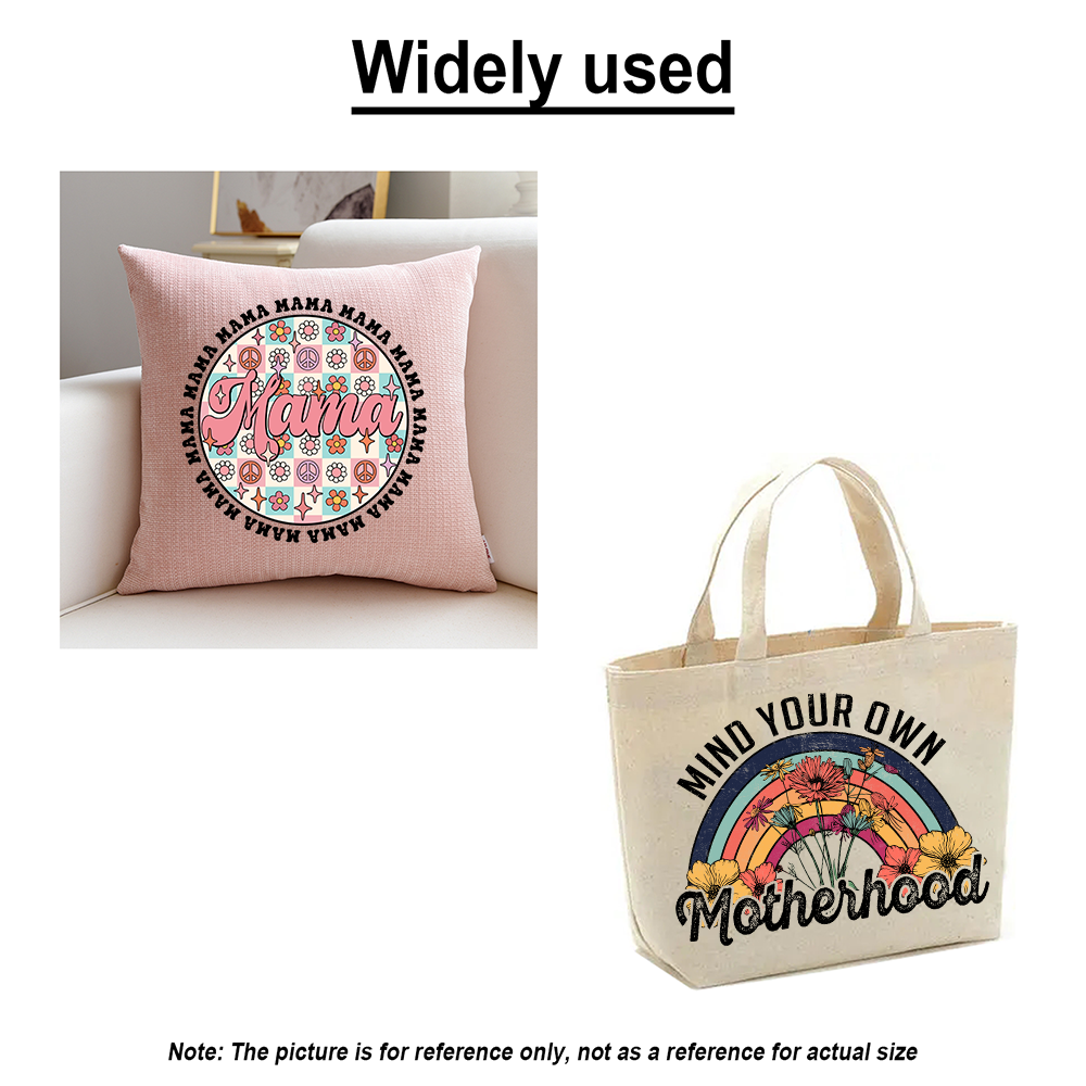 • Application:Can be used for cotton, polyester, knitted fabrics, non-woven fabrics, leather products, luggage fabrics, etc.(such as clothing, fabric bags, pillows, four-piece beds, socks, bags, knitwear, etc.)Tool Required:Household Electric Iron or Heat Press Machine
