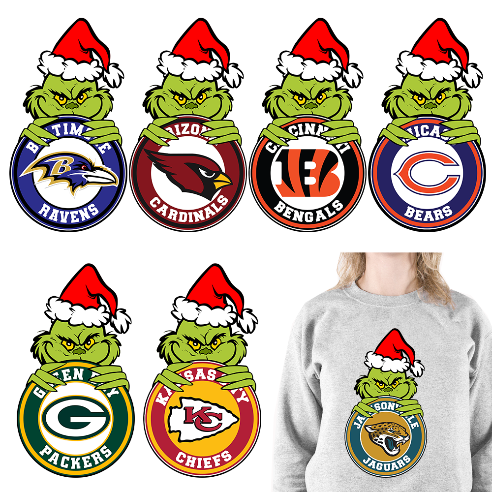 Washable Grinch Football Sport Team Iron On DTF Plastisol Heat Transfer Stickers Ready To Press For Clothing Bags