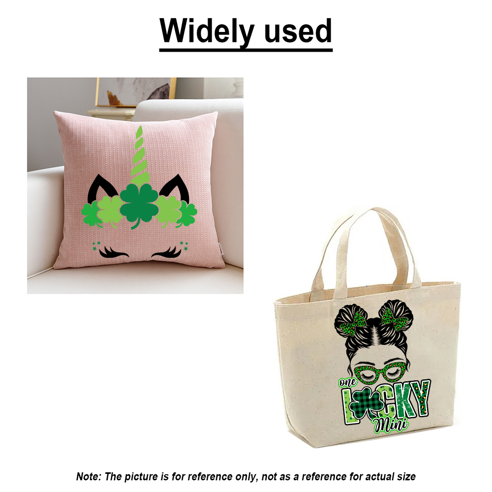 • Application:Can be used for cotton, polyester, knitted fabrics, non-woven fabrics, leather products, luggage fabrics, etc.(such as clothing, fabric bags, pillows, four-piece beds, socks, bags, knitwear, etc.)Tool Required:Household Electric Iron or Heat Press Machine