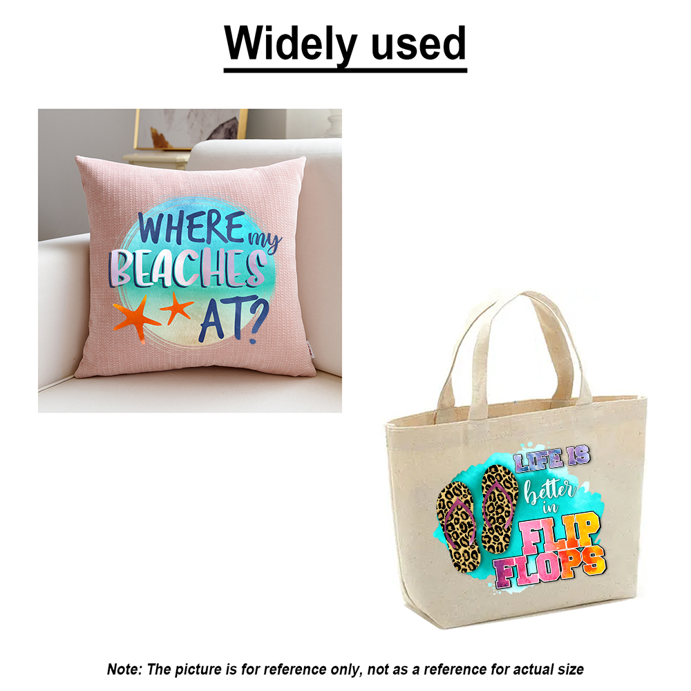 • Application:Can be used for cotton, polyester, knitted fabrics, non-woven fabrics, leather products, luggage fabrics, etc.(such as clothing, fabric bags, pillows, four-piece beds, socks, bags, knitwear, etc.)Tool Required:Household Electric Iron or Heat Press Machine