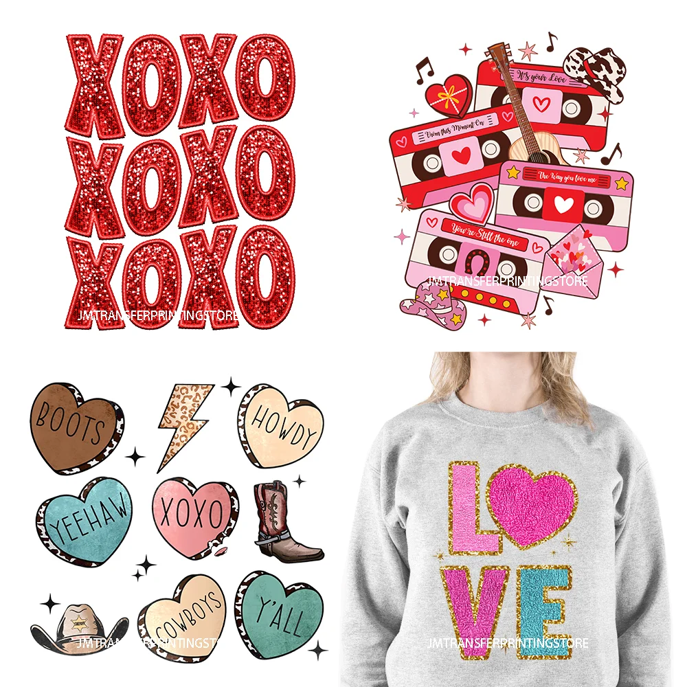 Faux Glitter Sparkly Sequins XOXO Howdy Conversation Hearts Loved Bible Verses Valentine DTF Heat Transfer Stickers For Clothing