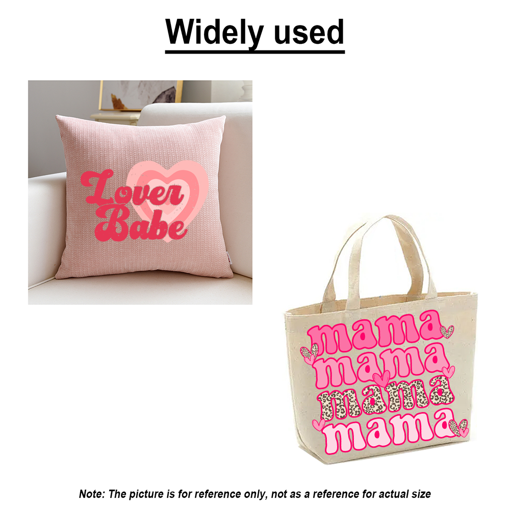 - Application:Can be used for cotton, polyester, knitted fabrics, non-woven fabrics, leather products, luggage fabrics, etc.(such as clothing, fabric bags, pillows, four-piece beds, socks, bags, knitwear, etc.)Tool Required:Household Electric Iron or Heat Press Machine