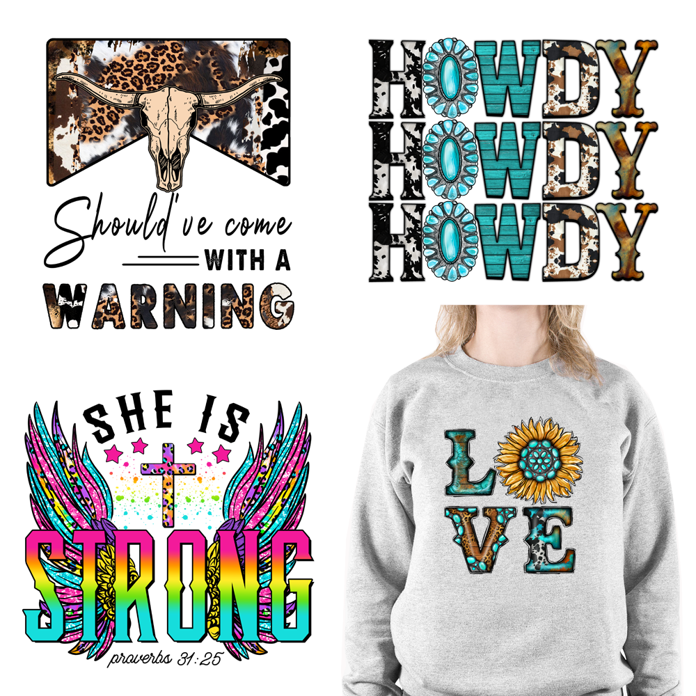 Western Cowboy Howdy Sunflower Boho Bull Skull DTF Transfers