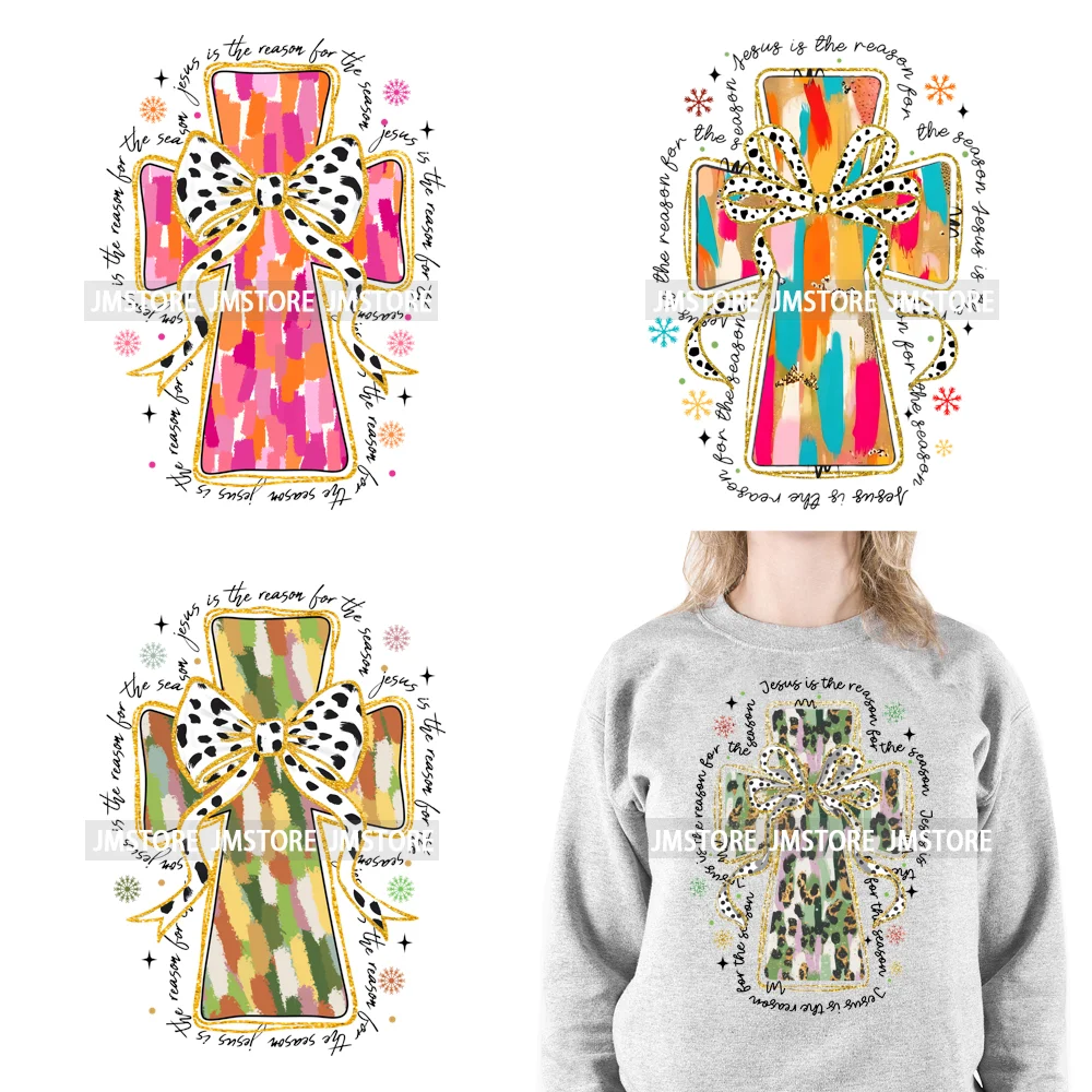 Colorful Coquette Dalmatian Faux Glitter Jesus Cross Christian Christmas Vibes Holiday Iron On DTF Transfer Stickers For Hoodies