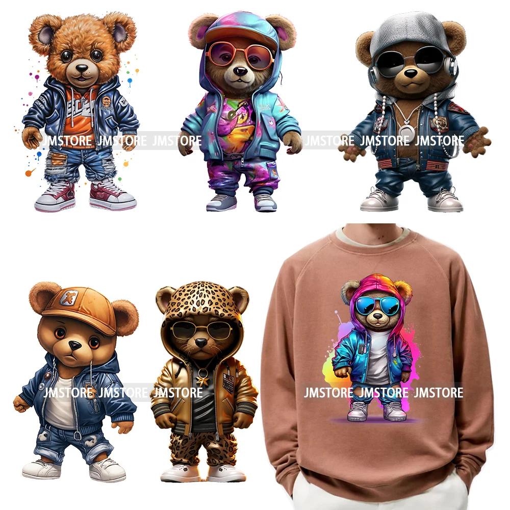 Colorful Urban Streetwear Graffiti Hip Hop Bear Design Decals DTF Iron On Transfers Stickers Ready To Press For Hoodies T-shirts