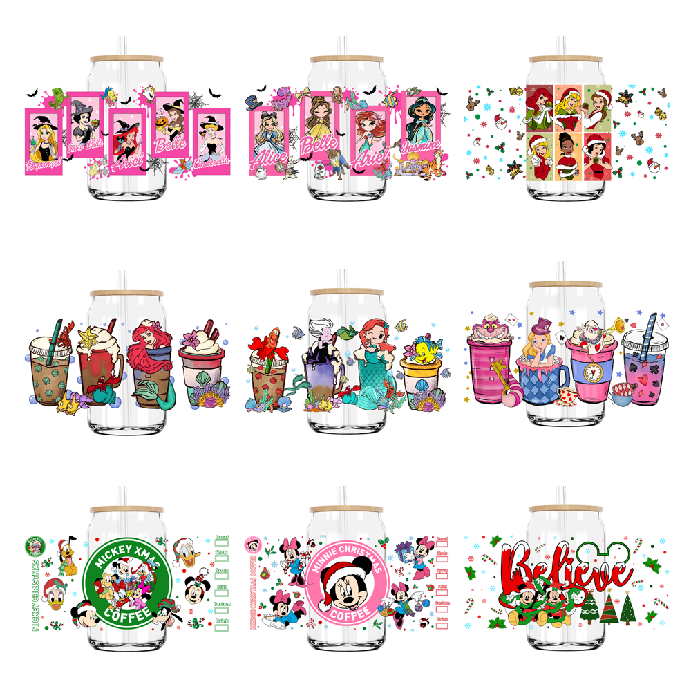 Beautiful Princess Queen 16OZ UV DTF Cup Wrap Transfers Stickers Custom Labels DIY Durable Waterproof Logo For Libbey Glass Can