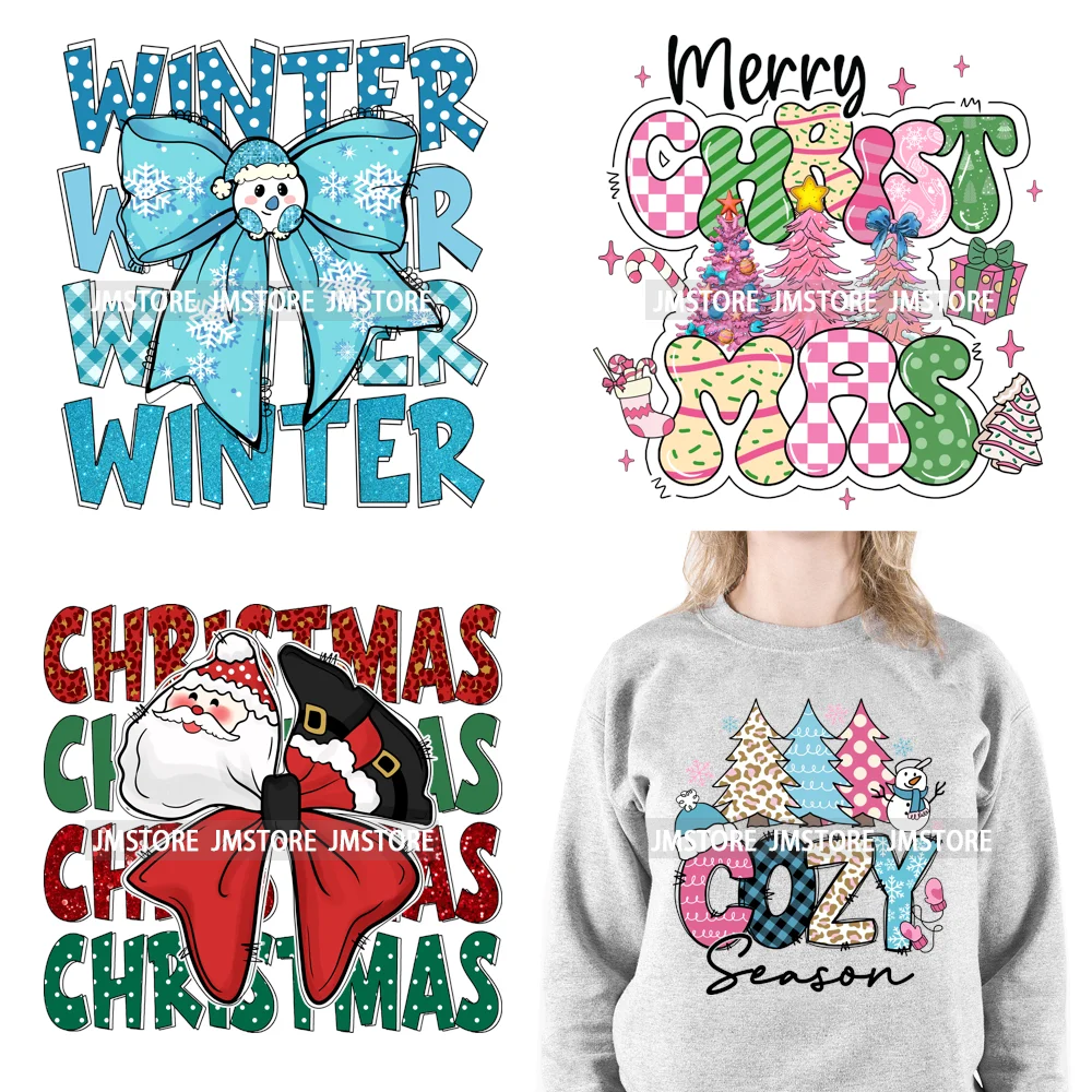Funny Coquette Bow Merry Christmas Cozy Season Snow Winter Holiday Vibes Iron On DTF Transfer Stickers Ready To Press For Shirts