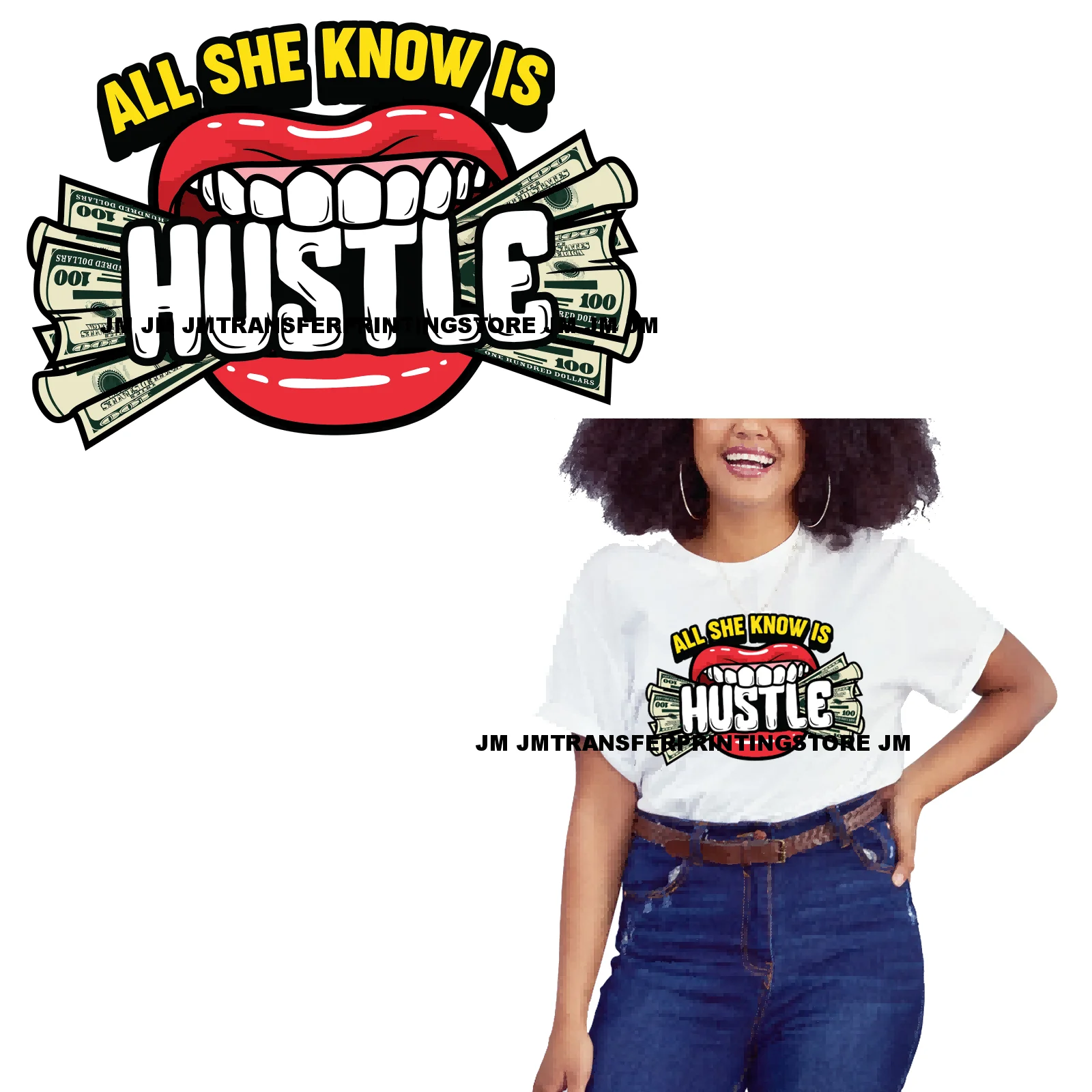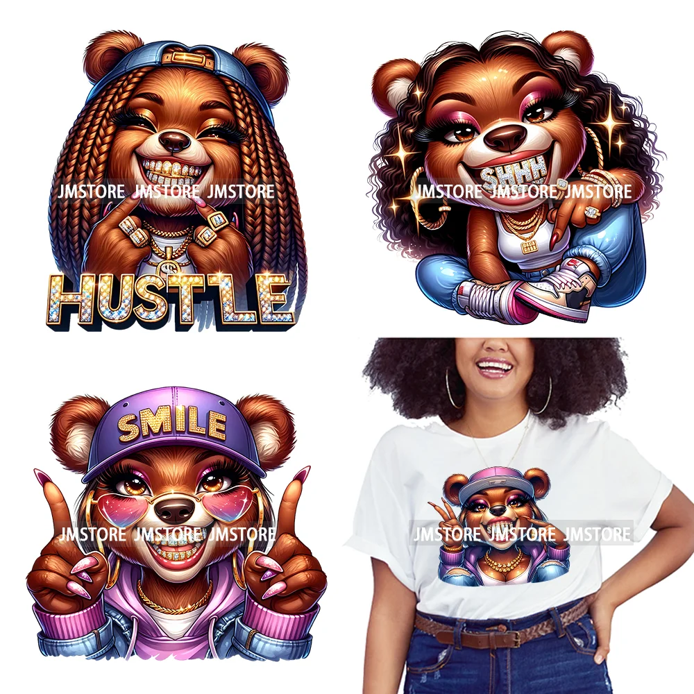 Girl Grillz Hustle Hip Pop Bear Money Quotes Sayings Washable Decals Iron On DTF Transfers Stickers Ready To Press For Clothing