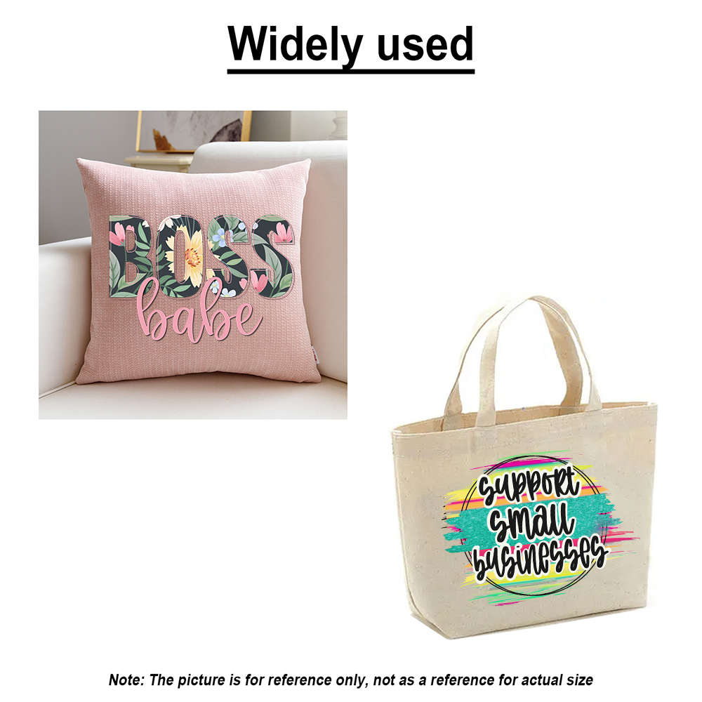 • Application:Can be used for cotton, polyester, knitted fabrics, non-woven fabrics, leather products, luggage fabrics, etc.(such as clothing, fabric bags, pillows, four-piece beds, socks, bags, knitwear, etc.)Tool Required:Household Electric Iron or Heat Press Machine