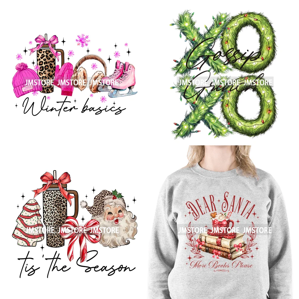 Winter Basics Tis The Season XOXO Gossip Green Merry Christmas Santa Book Iron On DTF Transfer Sticker Ready To Press For Shirts